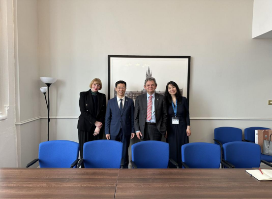 格拉斯哥大学校长安东尼马斯凯特里(Anton Muscatelli)教授、副校长(负责国际事务)瑞秋•桑迪森(Rachel Sandison)女士、亚当•斯密商学院经济系主任丁赛教授会见余淼杰。